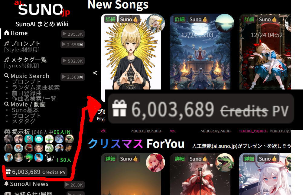 楽曲タイトルに「クリスマス」または「サンタ」を含んで楽曲登録頂くと、自動的にForYou枠で紹介されます(1分のうち数秒間は強制TOP表示)