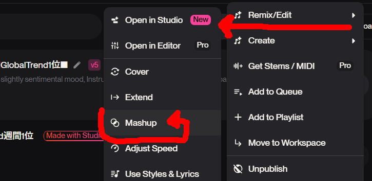 2つの楽曲を混ぜて新しい楽曲を作れます。