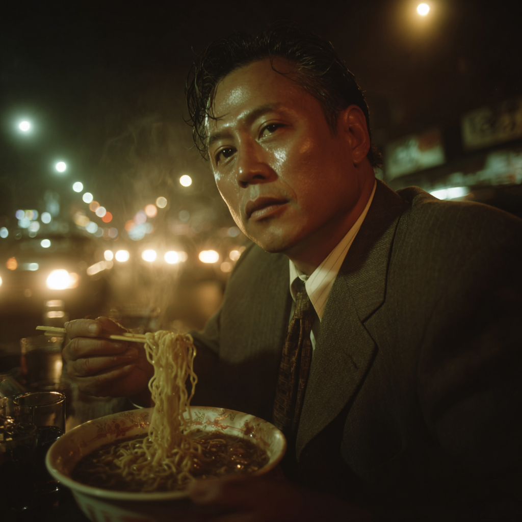 深夜特盛ラーメン背脂マシマシ 歌詞欄(Lyrics)終電を逃した街の明かり これ以上なにも必要がないはずなのに 誰かが呟き、僕を誘惑するのさ パーティの余韻がまだ残ってる 風が頬を撫で ふと現世を思い起こさせる 家路を急ぐ者を察したかのように 同志が次の戦いに挑もうと叫ぶ 脳裏に浮かぶはあの日の記憶 素晴らしい香りが僕をいざなう 抗えない魔の囁き そうさもう一戦 僕らは向かう ああ、〆のラーメン 罪悪感と幸福感のハイブリッド 背脂、チャーシュー、煮卵を乗せて 明日への希望を啜り込む そう人生の答えはいつもここにある 隊列を乱さずに並んだ僕ら スマホを眺め いざ人生の選択をする ここに来たからには最良のものを 間違ってからでは時は戻せぬ 次々と出てくる先人を見つつ あと少しで辿り着くユートピア もう何も考えられない ただ、この瞬間だけを生きてる ああ、〆のラーメン 罪悪感と幸福感のハイブリッド 背脂、チャーシュー、煮卵を乗せて 明日への希望を啜り込む そう人生の答えはいつもここにある 気づけば夜空はもう白んでる 明日も戦う、眠い目をこすって でも後悔なんて一つもないんだ この一杯があるから、また頑張れる ああ、〆のラーメン 罪悪感と幸福感のハイブリッド 背脂、チャーシュー、煮卵を乗せて 明日への希望を啜り込む Yeah! 人生の答えはいつもここにある 背徳感、罪悪感、焦燥感 そうやって人はまたひとまわり大きく成長していく 横へ、横へ! |