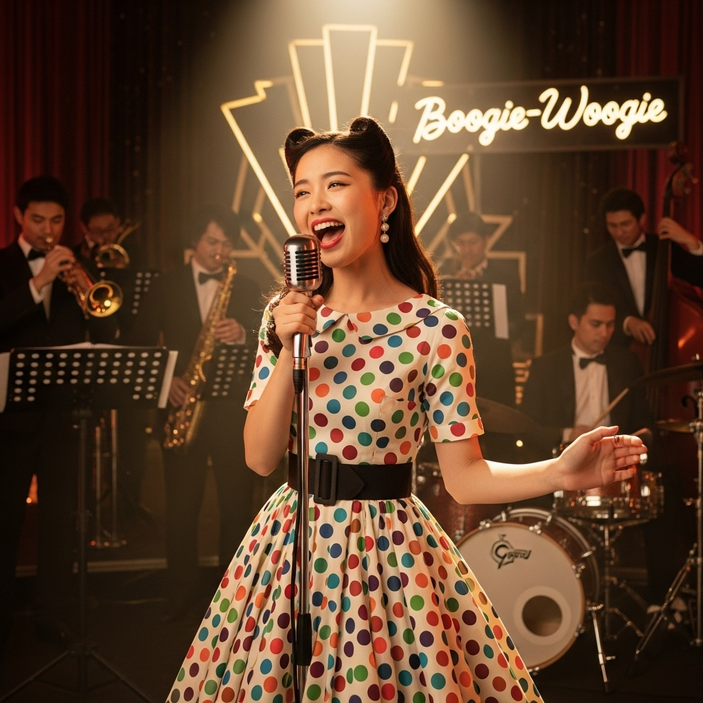真夜中ブギー 歌詞欄(Lyrics)[Verse 1] ネオンがまた 瞬く夜に ハイヒール鳴らすわ ワン・ツー・スリー 恋のリズムが 胸を叩いて 忘れたいことも 踊りに変えるの [Chorus] ブギウギ・ナイト 真夜中のステージ 涙もスパンコールみたいに光る ブギウギ・ハート あなたの残像 消せないけど 笑ってみせるの [Verse 2] 煙草の香り レコードのノイズ 古いジャズが 少し切なくて グラスの氷が カランと鳴れば あの頃の私 まだ踊ってる [Chorus] ブギウギ・ナイト 月明かりのショウ ため息さえも リズムに変えて ブギウギ・ハート 未練のブルース 夜風に乗せて 歌い明かすの [Bridge] シルバーのドレス 揺らして サヨナラのリフレイン レトロな夢でもいいの もう一度 恋を踊らせて [Final Chorus] ブギウギ・ナイト 真夜中のステージ 涙の跡も 星に変わるわ ブギウギ・ハート 私のメロディ 昭和の夢よ まだ続いて |