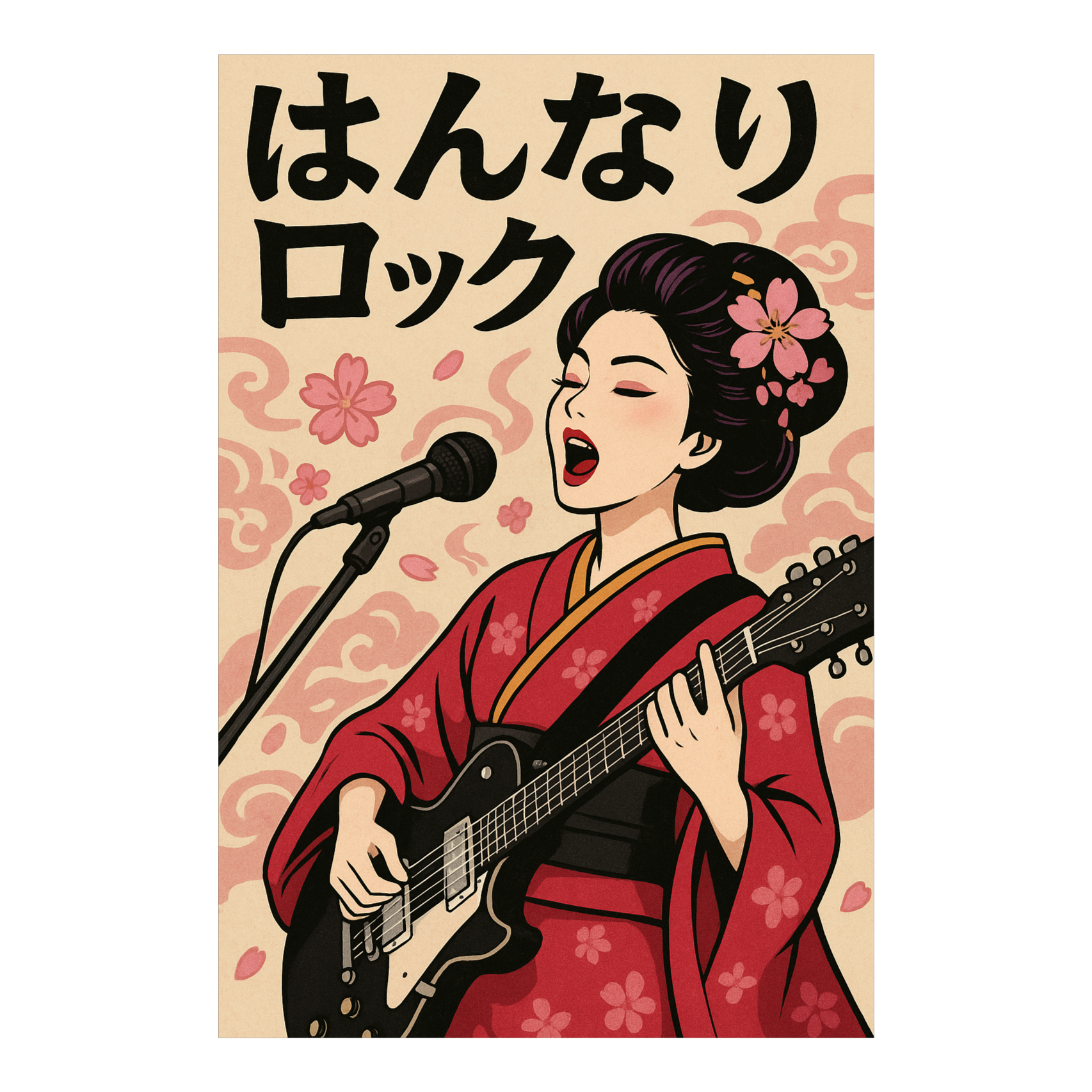 ♪ はんなりロック ♪ 歌詞欄(Lyrics)[Intro] おいでやす 心の奥まで しっとり燃える音、聞いておくれやす [Verse 1] お白粉に 月映して そっと爪弾く 夜更けの恋 うちは ええ子のふりして 実は 炎 焚いとります [Pre-Chorus] 紅を引く指 震えても 音はまっすぐ 嘘つかへん 旦さんも 姐さんも 目を細め 「はんなりやなぁ」と 息を止めはる [Chorus] はんなりロック 咲いてまう 声も涙も 飾りごとやない 縁で散る それが花 「おおきに」言うて 夜を焦がすで [Verse 2] 金襴の裾 風に揺れ ひとひらの夢 散り急ぐ 優雅な指先に ギターの弦が 泣いとるわ [Pre-Chorus] お座敷よりも ステージが似合う 紅椿みたいな魂(ソウル) 「ええ調子やな」と 囁いて 拍子木鳴らす 星の下 [Hook] はんなりロック 月見酒 恋も未練も 唄にして 千年の都で 今燃やす 上品に どこまでも 熱うおすえ [Interlude] [Bridge] ほんまの はんなりはな 抑えてるようで 滲み出るもんやねん [Last Chorus] はんなりロック 夢のあと 笑うておやすみ また明日 うちら ええ感じやろ? 言うて 夜に溶ける音 残していきおす [Outro] 静かに…聞こえはりますか? まだ この胸のどこかで 鳴っとるわ… はんなり、はんなり… はんなりロック… おおきに… はんなりロック… またお会いしまひょ… 桜の花びら 一枚 弦に落ちていきおす 最後の一音が 春風に消えていきはります── |