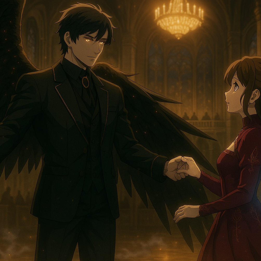 :Melodic death metal forged with epic grandeur and doom-laced atmosphere. Blistering harmonized guitar riffs drive the track with neoclassical fury while symphonic keyboard layers and haunting choir textures swirl through slow-burning gothic overtones. The guitars tuned to Drop C blend sharp black metal tremolo with anthemic dramatic chord progressions. Vocals shift between vicious screams and layered demonic growls evoking the mystery of a divine reaper masking his true identity. The song builds from theatrical waltz-like pacing into a soaring cinematic chorus filled with tragic elegance. Doom metal undertones weigh the mix with heavy gravity while blackened orchestration conjures a judgmental sacred fire. This track channels the surreal moment where the Angel of Death dances not to kill but to conceal—his presence regal and terrifying watched by kings and queens who do not yet know their end is near.