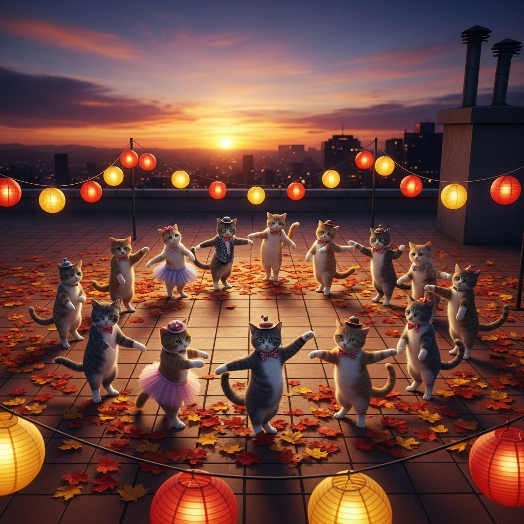 🐈にゃん盆ナイト 歌詞欄(Lyrics)[Intro] ニャー ニャー ニャー ニャー 夏じゃないけど踊ろうよ 猫たちの季節外れの盆踊り [Verse 1] 屋根の上で月を見ながら しっぽを揺らしてステップ踏む 風鈴の音に耳をすませ ちょっと不思議な夜のパレード [Chorus] ニャニャニャ盆踊り 踊れ踊れ 季節は関係ないよ今夜は 丸いお月様も一緒に回る 猫の祭りに参加しよう [Verse 2] 提灯の灯りふわり揺れる 小さな影がひらり舞う にゃんこの声が合図さ みんなで輪になって回ろう [Chorus] ニャニャニャ盆踊り 踊れ踊れ 夏じゃないけど気にしない しっぽも耳もリズムに乗せて 猫たちの夜はまだ終わらない [Bridge] 遠くの森からも集まる 不思議な仲間と夜のダンス 星降る夜に音頭を響かせ 誰も知らない祭りがはじまる [Outro] ニャー ニャー ニャー ニャー 季節外れでも楽しいね 猫たちの盆踊り また来年も |