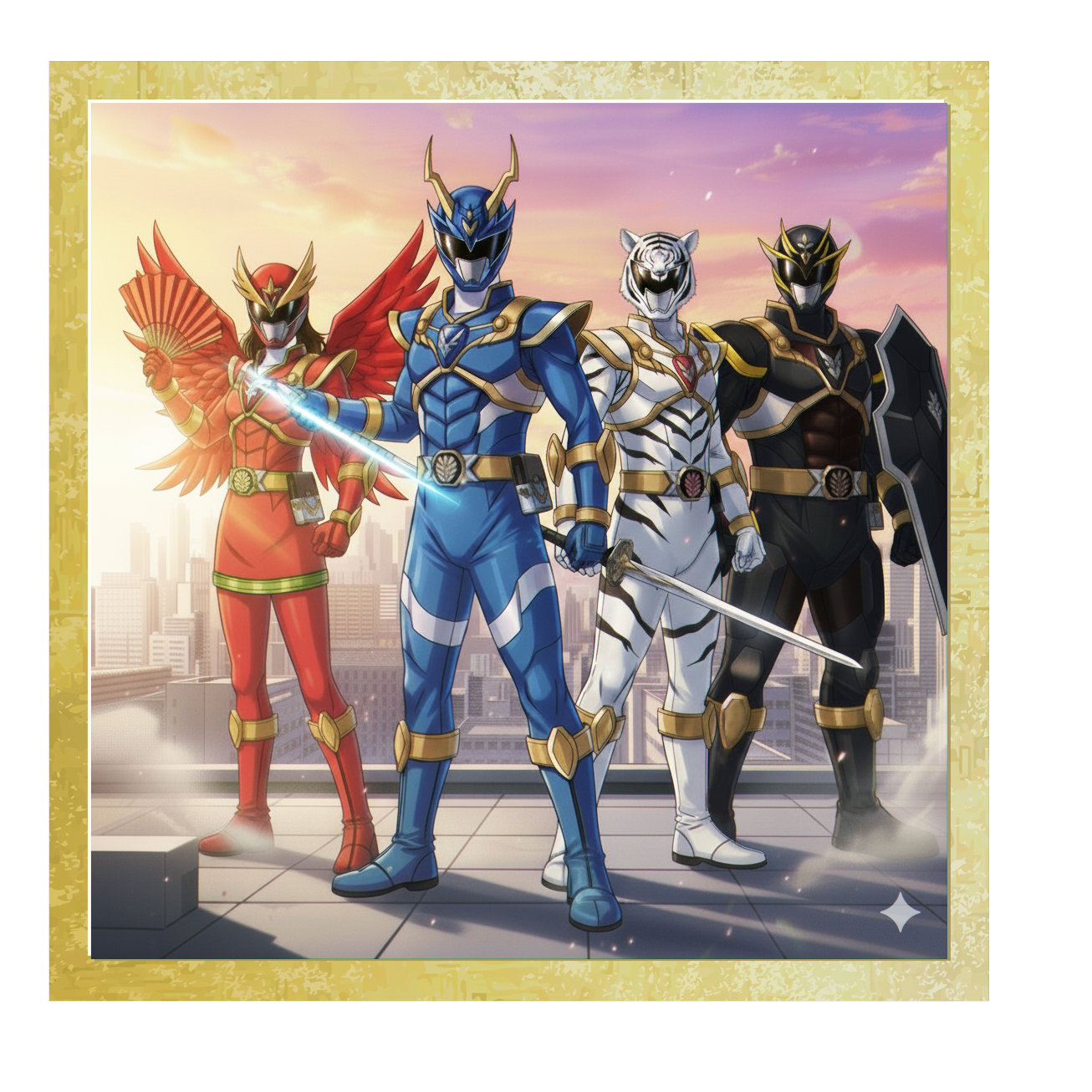 戦え! 四神戦士!! 歌詞欄(Lyrics)[call] ブルードラゴン! ホワイトタイガー! レッドフェニックス! ブラックタートル! [Verse] 東の空に青い流れ 青龍の鱗が風を裂け 轟けカミナリ 鳴り響け! 西の山に白き道 白虎の爪が闇を裂き 一閃の刃 光る道! [Chorus] 青龍! 白虎! 朱雀! 玄武! 四神(しじん)の力で守る地球 勇気を胸に 立ち向かえ 戦え! 四神(しじん)戦士たち! [Verse 2] 南の空に赤き星 朱雀の羽根が空を焦がす 燃えろ情熱 燃えつくせ! 北の大地に黒き山 玄武の甲羅が守り抜く 揺るがぬ誓い 勝利の証! [Chorus] 青龍! 白虎! 朱雀! 玄武! 四神(しじん)の力で守る地球 絆の強さ 信じ合え 戦え! 四神(しじん)戦士たち! [outro] ブルードラゴン! ホワイトタイガー! レッドフェニックス! ブラックタートル! |