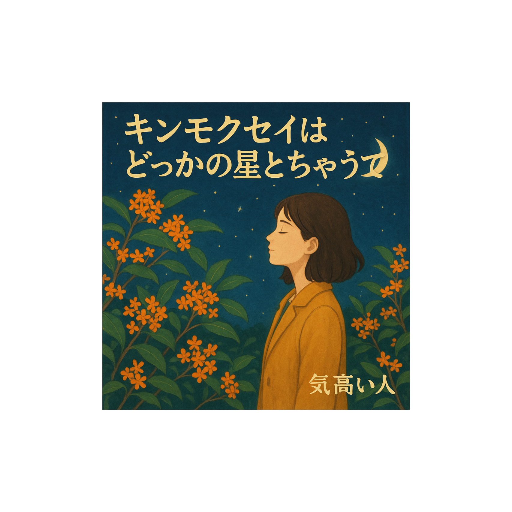 キンモクセイはどっかの星とちゃうで 歌詞欄(Lyrics)[Verse 1] ほのかに香る夜の端(は)で 君の背中を追いかけた 風にまぎれたその笑顔 金木犀が似合ってた [Chorus] キンモクセイはどっかの星とちゃうで 地上で咲いて輝くもんやで 気高い人は雲の上やなく ここで笑う 君のようや [Verse 2] 黄昏(たそがれ)の道すれ違い 声をかけずに見送った 胸の奥で灯(とも)る香り それが君の残り香や [Chorus] キンモクセイはどっかの星とちゃうで 寂しさも愛も包むもんやで 気高い人は遠く見えんでも ちゃんとおるで この街に [Bridge] 夜空に願うことよりも 君の今を想いたい 香るたび思い出すのは 手の届く優しさや [Final Chorus] キンモクセイはどっかの星とちゃうで 風が運ぶ 愛の証やで 気高い人は夢の先やなく いま咲いてる 君なんや |