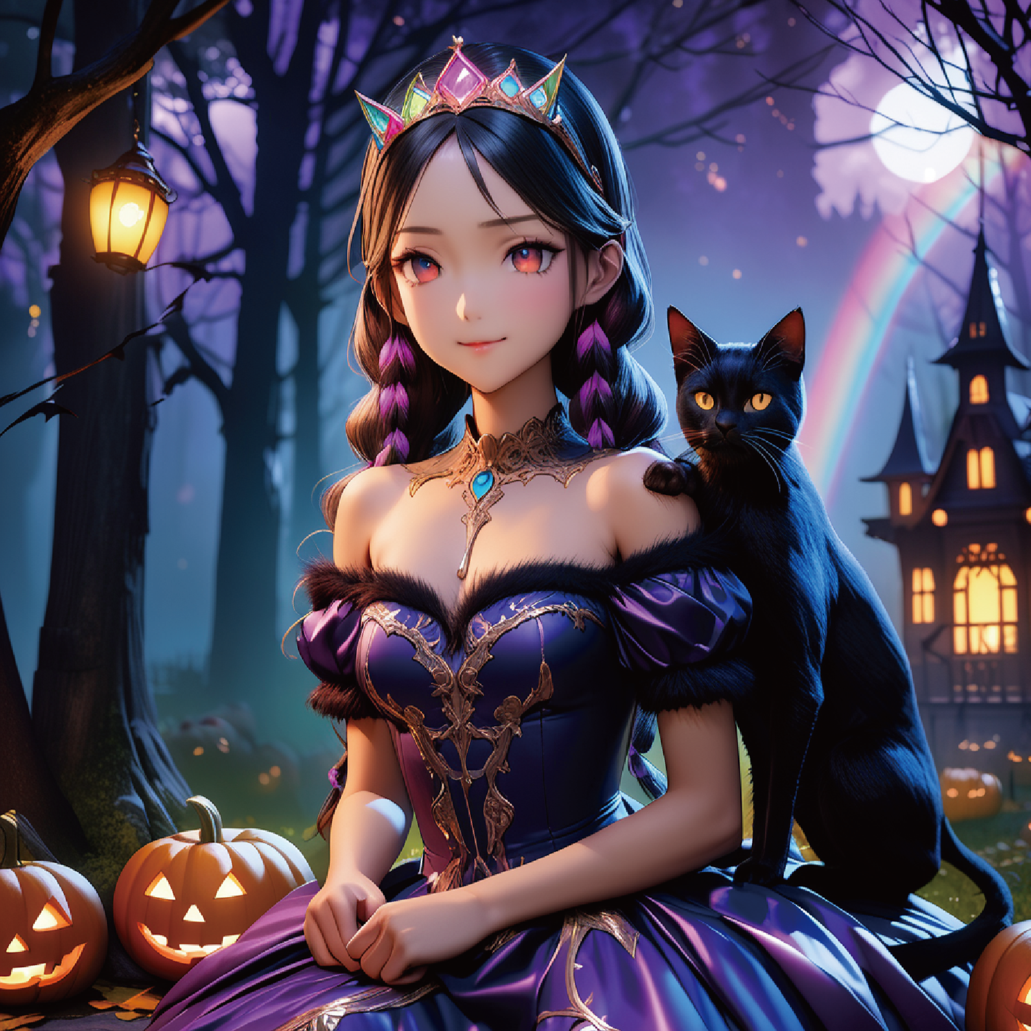 :Vocaloid female vocals Catchy EDM intro. Dark trap + Halloween pop playful yet eerie. Heavy 808 bass sharp hi-hats ghostly choir pads. Distorted bell synth + chains/whispers FX. Energetic rap flow playful wordplay. Chorus: English shouts Trick! Treat! Dance! Feast! Overall: Spooky-fun Halloween party vampire castle Cinderella motifs. Section-specific: [Intro] 8 bars instrumental only: Djent 7-string guitar + harp/organ music box ghostly choir chains/whispers DJ loopable. [Verse2] Prince entrance: Reduce 808 (-6dB) tight kick+clap sparkling pluck arpeggio short strings warmer vocal widen stereo. [Chorus] Trap rhythm Heart bounce English shouts. [Bridge] Dawn bell tolls soft pads highlight Tiara shine u0026 prince’s gaze. [Outro] 8 bars instrumental: Fade-out reduce 808 extend pads/organ light hi-hats/claps ghostly FX lingering echo.