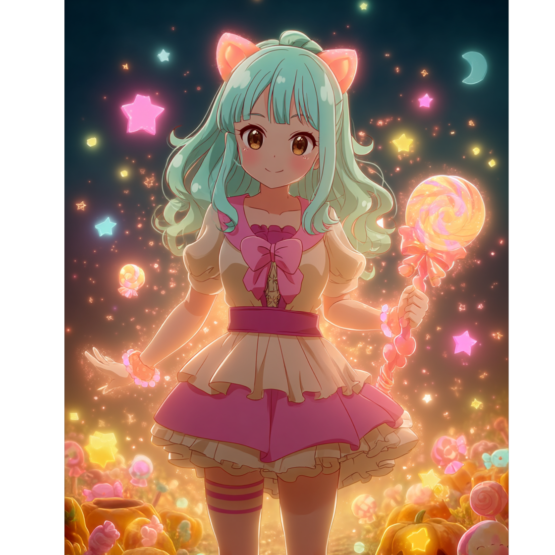 :Twinkle Hip Pop song with sparkly synths lo-fi beats and cute girl rap. A magical Halloween night with cat magical girl vibes. Playful female vocal with a sweet whispery tone switching between rap and singing. Bright dreamy kawaii hip-hop rhythm with twinkling bells and soft bass. Theme: “Twinkle Nyalloween☆Magic” — a cat magical girl casting love spells under starlight. Use sparkly textures candy-like melodies and bouncy groove.