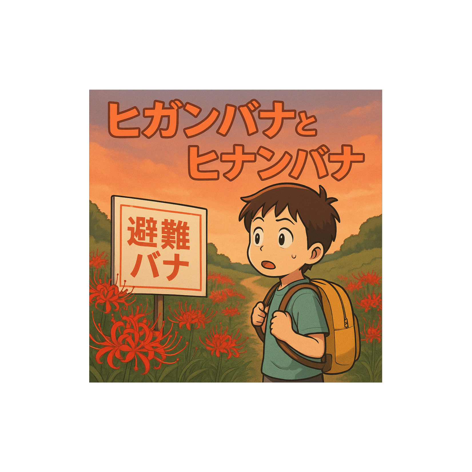 ヒガンバナとヒナンバナわ 歌詞欄(Lyrics)[Intro in humorous tone] 「え?避難バナ!? どこ逃げんの!? え、ヒガンバナ!? 花!?」 --- [Verse 1] 風が赤く 染めた坂道 誰かの声 呼ぶように響く 「避難バナ」って 貼り紙見つけ リュック背負って 駆け出したんだ --- [Pre-Chorus] 途中で気づく これは花の名 避難ちゃうやん ヒガンバナやん --- [Chorus] ヒガンバナ 咲く頃に また誰かを 思い出す 避難バナ 間違えて 再開(さいかい)した 僕の夏 --- [Verse 2] 防災メール 鳴るたび走る 花畑まで 駆けてまた戻る 君の笑顔 思い出しては どっちの避難か 迷う午後 --- [Pre-Chorus] 遠くの空に 赤い花咲く 君のことも 思い出した --- [Chorus] ヒガンバナ 揺れるたび 誰かの声 呼ぶみたい 避難バナ 誤読して 再開した 恋の合図 --- [Bridge] あの日逃げたのは 災じゃなくて 照れくさい 想いから 避難の先で 見た景色 君の笑顔 また咲いた --- [Final Chorus] ヒガンバナ 風に散り 避難バナ もう言わへん 再開の鐘 鳴り響く 僕らまた 会えるかな --- [Outro in spoken tone] 「結局、避難も再開も、君のせいやで——ヒガンバナ。」 |