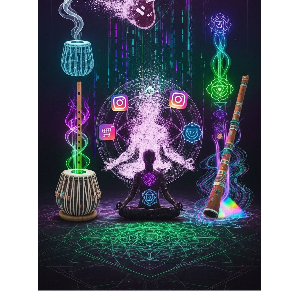 :Darkpsy Minimal Psytrance Glitch BPM140-160 Ethnic Electronica World Fusion; [Verse 1]: Minimal hypnotic sitar arpeggios tabla bamboo flute ambient pad BPM140 [Pre-Chorus 1]: Add glitch percussion sub-bass processed vocal samples [Chorus 1]: Didgeridoo drone deep sub-bass breathing sounds with reverb BPM145 [Verse 2]: Throat singing introduced tabla intensifies psychedelic synth nature sounds [Pre-Chorus 2]: Complex glitch patterns tribal percussion wobbling bass BPM150 [Chorus 2]: Full fusion - sitar tabla didgeridoo flute synth integrated BPM155 [Bridge]: Peak intensity throat singing dominant wobbling bass Instagram notification glitch BPM160 [Last Chorus]: All elements balanced cosmic breathing BPM150 [Outro]: Ethnic instruments fade electronic ambience remains faint glitch persists