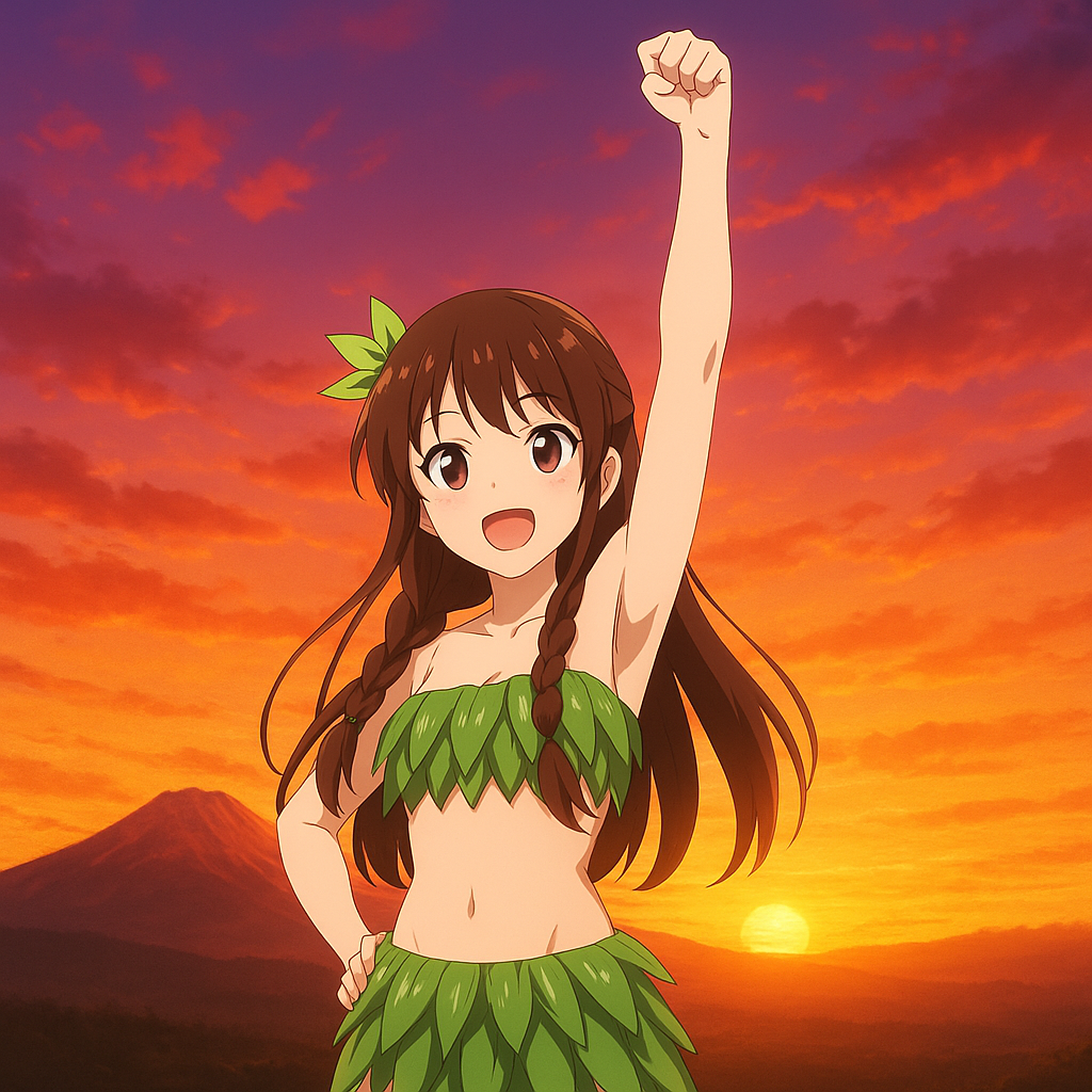 :#Polynesian #Otea #Tahitian #DarkTribal #Upbeat #Percussion #WarriorDance #Mythology #EpicRhythm #Ritual #Chants #TribalDrums #Heroic #Energetic #Cinematic #Firelight #Volcanic #BattleAtmosphere #Metalcore #BattleAnthem #UpliftingChorus #CrowdAnthem #EpicChorus #SoaringMelody #DanceEnergy #RhythmicDrive #ExplosiveTransitions #AdrenalineFueled Tempo / Rhythm:Fast tempo battle-driven melody pounding groove twin/double kick drums powerful riffs synced with kick explosive transitions vibrant battling soundscape. Instrumentation / Soundscape: Energetic tribal percussion electric synth layers battling synths cinematic firelight/volcanic atmosphere ritual chants warrior dance rhythms live vibes. Vocals: Performed by a group of cute Japanese young girls singing in harmony High-pitched vocal harmonies battle ad-libs Triple vocals singalong/anthem-style chorus No false cord scream no growl no dirty voice Mood / Theme:Battle and magical mood mythology-inspired warrior dance