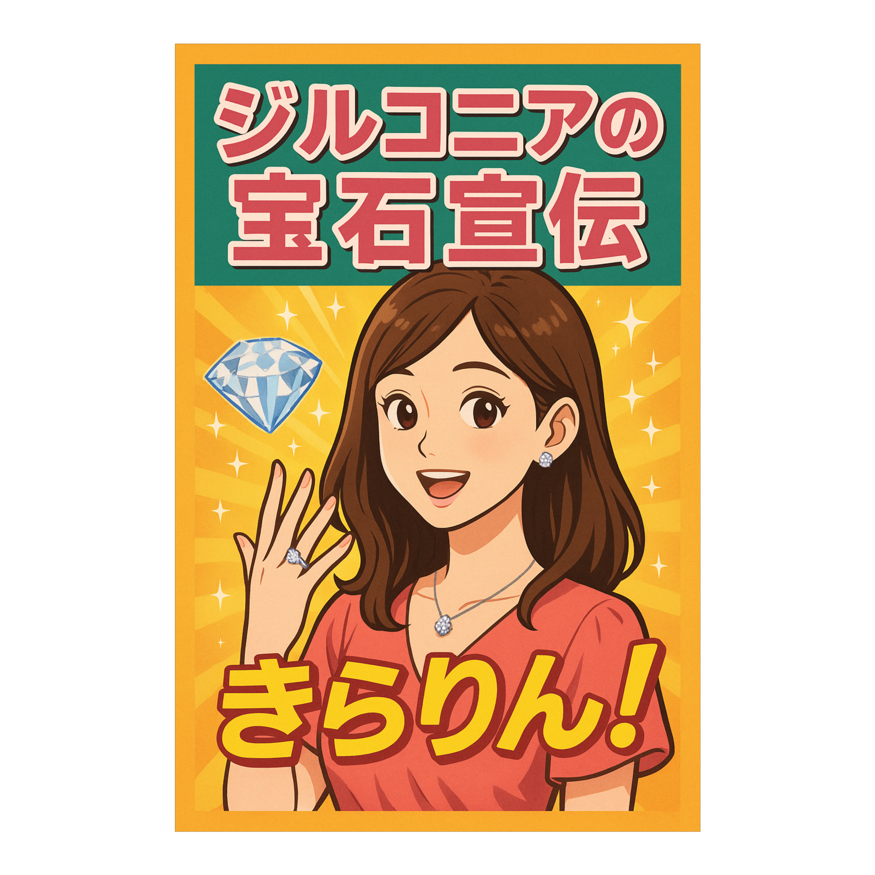 ジルコニアの宝石宣伝 歌詞欄(Lyrics)[Intro in cheerful announcer tone] お待たせしました〜!ジルコニアの新CMです! --- [Verse 1] ダイヤに似てても 違う良さがある 軽くて強いし 毎日つけられる おしゃれな光で 気分も上がってく 今日も笑顔で 鏡にウインク --- [Pre-Chorus] 値段じゃないよ 輝きは心 ジルコニアが 背中を押す! --- [Chorus] ジルコニア!きらりん! 賢く光る宣伝! ジルコニア!しっかり! 未来を照らす宝石! ジルコニア!きらりん! きっと似合う宣伝! ジルコニア!きっと! 毎日がジュエルタイム! --- [Verse 2] 朝の通勤も 耳でチラリ光 リモート会議も 画面でまぶしい 友達言うのさ 「それ高そうやね!」 笑って返すよ 「実はお得やで!」 --- [Pre-Chorus] 手に届く夢 それが輝き ジルコニアで 心も晴れる --- [Chorus] ジルコニア!きらりん! まぶしすぎる宣伝! ジルコニア!しっかり! 現実派の宝石! ジルコニア!きらりん! 恋もはじまる宣伝! ジルコニア!もっと! 輝けわたしの毎日! --- [Bridge - spoken tone light jazz CM style] 「お値段そのまま、気分はハイブランド!」 「ジルコニアで、笑顔に光を!」 --- [Chorus - Final] ジルコニア!きらりん! 笑顔つなぐ宣伝! ジルコニア!しっかり! 信頼のきらめき! ジルコニア!きらりん! 未来を映す宣伝! ジルコニア! forever! 実用宝石宣伝〜〜!✨ |
