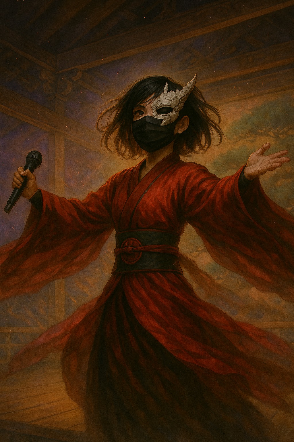 斬響ノ贄 歌詞欄(Lyrics)【Intro】 (鐘の音・和笛の不協和音) まだ終わらない―― この聲がある限り、舞台は呪いだ。 ⸻ 【Verse 1】 瓦礫に響く足音(あしおと) 踊る影 仮面の欠片(かけら)が まだ頬を裂く 誉れも罪も 全部まとめて 喝采(かっさい)に変えて 飲み干せばいい ⸻ 【Pre-Chorus】 痛い? 怖い? 笑い飛ばせ 聲が刃なら 世界を斬れる 「本物を見せて」そう望むなら 狂気(わたし)の全部 くれてやるよ ⸻ 【Chorus】 唱えろ 呪いも祝福(いのり)も この聲ひとつで 夜を裏返せ 叫べよ 踊れよ 燃え尽きるまで 偽りの幕を 焼き尽くせ! ⸻ 【Verse 2】 砕けた夢の数だけ 震える聲 痛みが証(あかし) 命を刻む 誰もが縛られた偶像(おもちゃ)なら わたしが鎖を 断ち切るだけ ⸻ 【Pre-Chorus 2】 泣いて 笑って 狂うほどに 聲は本能を 喰らい尽くす 「嘘でもいいから 本物でいて」 観客(あなた)が望む 呪詛の祝祭 ⸻ 【Chorus 2】 唱えろ 怨嗟(おんさ)も祈りも この聲ひとつで 未来を裏返せ 叫べよ 踊れよ 舞い尽くすまで 仮面の外の 真実を曝け出せ! ⸻ 【Bridge】 ……まだ見たいんでしょう? 終わらない狂宴を。 じゃあ壊してあげる。 あなたの世界ごと。 ⸻ 【Last Chorus】 唱えろ 呪縛も希望も この聲ひとつで 幕を裂き破れ 叫べよ 笑えよ 命尽きても この聲だけは 止まらない―― ⸻ 【Outro】(和笛と残響だけ) ……幕が降りても、聲は消えない。 |