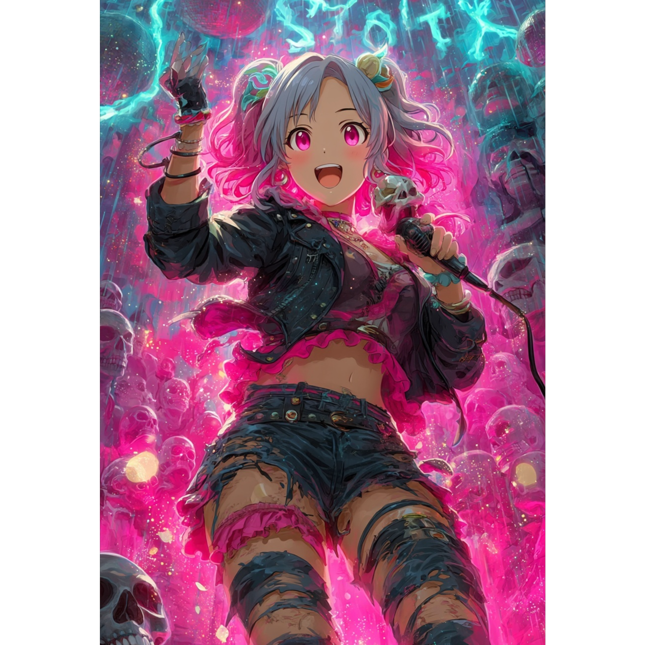 Caption:A chaotic high-energy Halloween anthem reborn in breakcore style. A fierce female rapper brings fire to the graveyard blending glitchy bass spooky charm and unstoppable bounce. Where the dead don’t sleep — they dance. ハロウィンの夜、墓場がダンスフロアに変わる。 ブレイクコアの轟音とともに、女性ラッパーが放つ闇かわいいカオスアンセム。 ビートも魂も止まらない――死者たちは眠らず、踊り続ける。