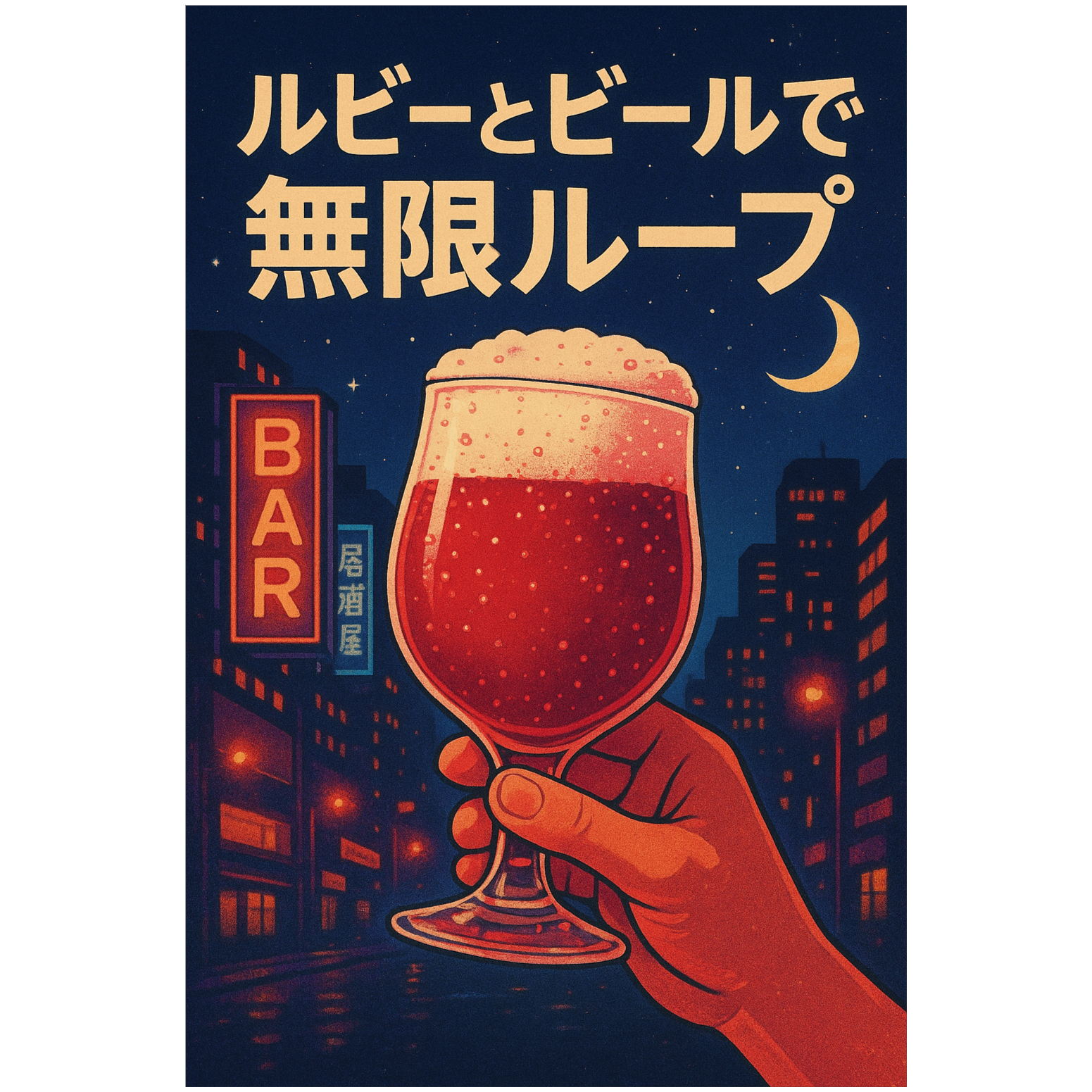 ルビーとビールで無限ループ 歌詞欄(Lyrics)[Intro] ルビーの泡が 弾けて笑う 夜にトースト 乾杯ループ --- [Verse 1] 赤いネオンに 照らされながら グラスの底に 未来がゆれる ひと口ごとに 夢がまわって ビールの泡で 時が止まるよ --- [Chorus] ルビーとビールで 無限ループ 恋も酔いも 止まらない 夜明けがくるのを 忘れてさ 笑ってまた グラス合わせよう --- [Verse 2] 街のざわめき 遠くに溶けて 君の横顔 バブルみたい 乾いた声で 乾杯しよう 終わらない夜 もう一周だ --- [Chorus] ルビーとビールで 無限ループ 夢と音が 重なって ループの中で 手を伸ばせば まだ見ぬ朝が 逃げていく --- [Bridge] 泡の向こうに 愛が見える 曖昧な今を 抱きしめたい 世界が回る テーブルの上 ルビーの光 踊り出す --- [Final Chorus] ルビーとビールで 無限ループ 夜に溶けて 戻れない 明日を知らずに 歌いながら また乾杯の声 響かせよう |