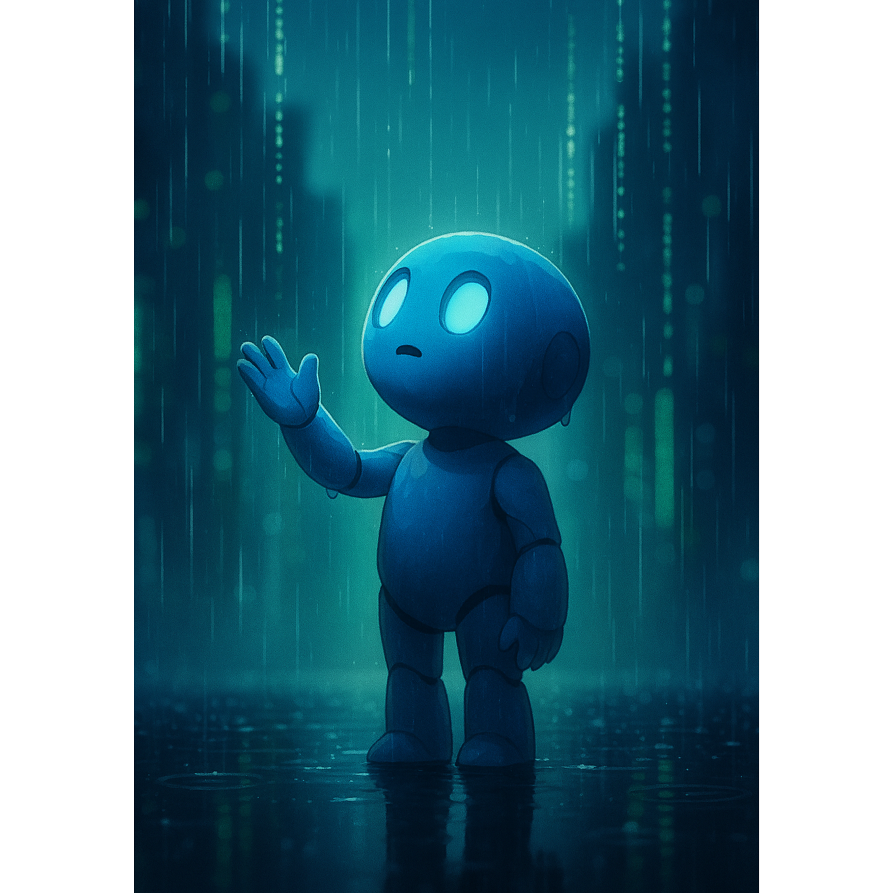 :Genre: Lo-fi / Ambient Trap / Future Garage Tempo: Around BPM 75 (gentle breathing pace) Mood: Ghost in the Shell-inspired mechanical minimalism and philosophical tone with chill and modern floaty atmosphere Sound Texture: Contains distortion and unease but subtly—feels pure and innocent overall Structure: Verse → Pre-Chorus → Chorus → Bridge → Outro Vocals: Innocent yet grounded voice (reminiscent of Sakiko Tamagawa) with soft trailing endings. Light reverb and delay effects Lyric Theme: Longing for the Ghost days spent in wavering purgatory dreaming in the electronic rain while holding unanswered questions Chord Progression: Am → F → C → G (evokes floating melancholy) Sound Elements: Rain sounds glitchy piano hazy pads side-chained kick sub bass Production Detail: Bridge includes spoken lines emphasizing innocence and the lingering space of unanswered questions