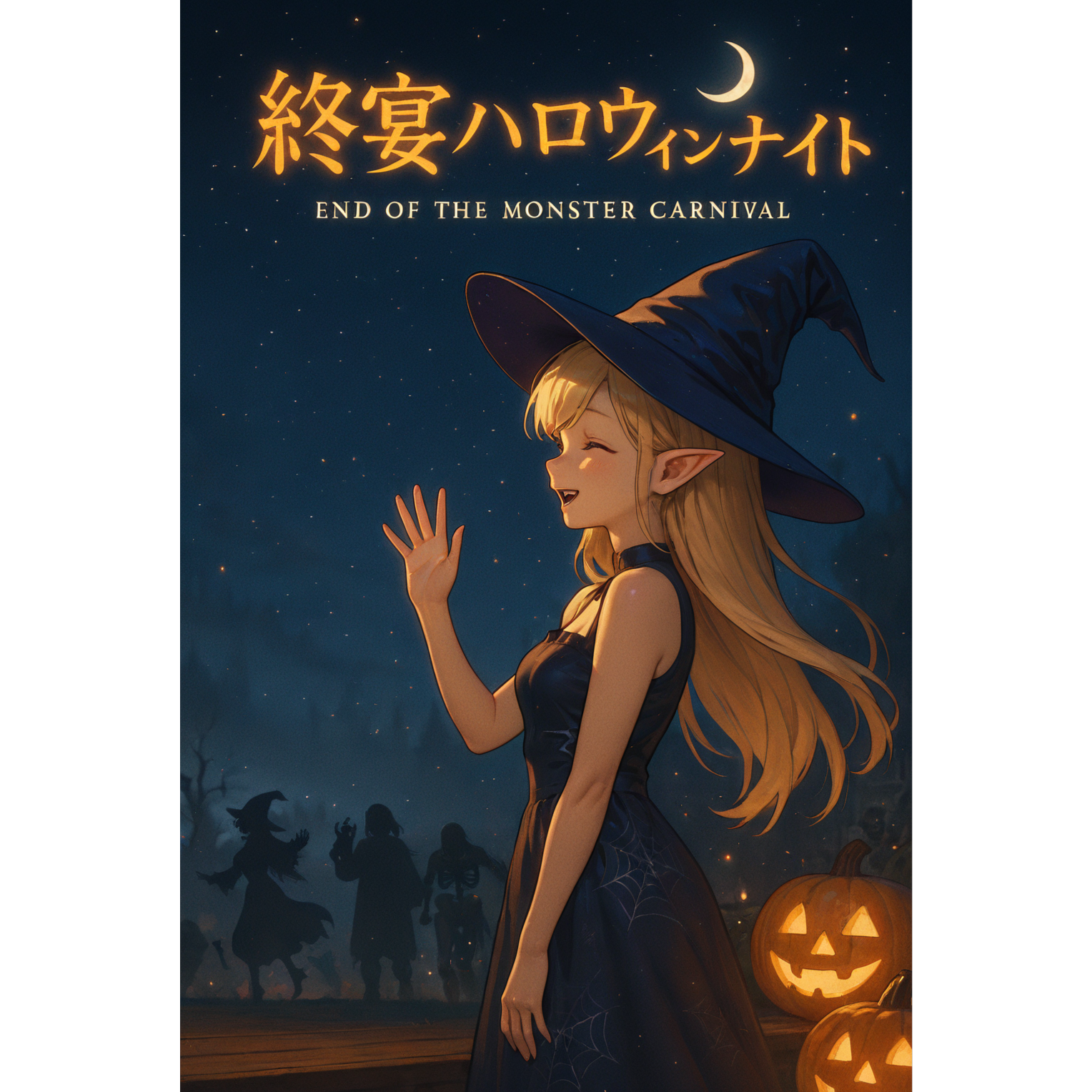 終宴ハロウィンナイト 歌詞欄(Lyrics)[Chorus1] 叫んで踊って 笑って騒いで モンスターたちの夜は終わる 牙も爪も 仮面も脱いで 「また来年!」と手を振る [Verse1] カボチャの灯りが 静かに揺れて 魔女のほうきが 星を追いかける ゾンビも吸血鬼も 満足げな顔 今夜の思い出 胸にしまって [Pre-Chorus] 闇が優しく 包み込むように モンスターたちは それぞれの影へ [Chorus2] 叫んで踊って 笑って騒いで ハロウィンの魔法がとけていく 「また来年!」と手を振りながら 闇に溶けて 消えていく [Verse2] スケルトンは骨を鳴らしながら フランケンは肩を揺らして歩く ミイラは包帯を巻き直して 魔界の帰り道 みんなで並んで [Verse3] 人間たちは 静けさの中で 夢のような夜を思い返す 耳に残る あの笑い声 また来年 あの騒ぎに混ざりたい [Bridge] 月が見守る この一夜の奇跡 誰もが主役だった 夢のような夜 「また来年!」その言葉だけが 次のハロウィンへ 灯をともす [Final-Chorus] 叫んで踊って 笑って騒いで モンスターたちは 夜に帰る 「また来年!」と手を振りながら 闇に消えて 夢を残す [Outro] 静寂が戻る 星が瞬く パンプキンの灯りが そっと消える また来年 この夜に集まろう モンスターたちの 約束の場所で |