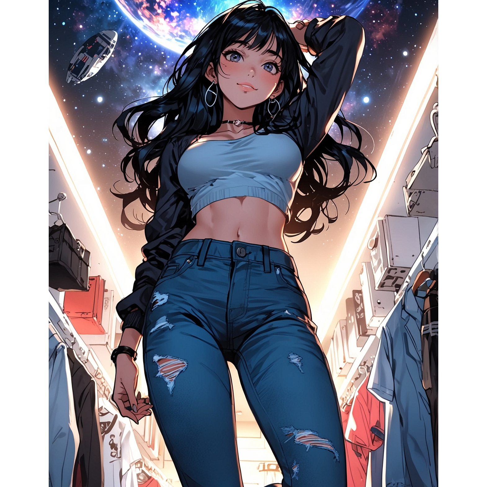 Caption:不意に宇宙のジーンズショップってのが浮かんじゃって、、、気がついたらこんな曲になってました😅 Suddenly this space jeans shop idea just hit me out of the blue and before I knew it it turned into this song.😅