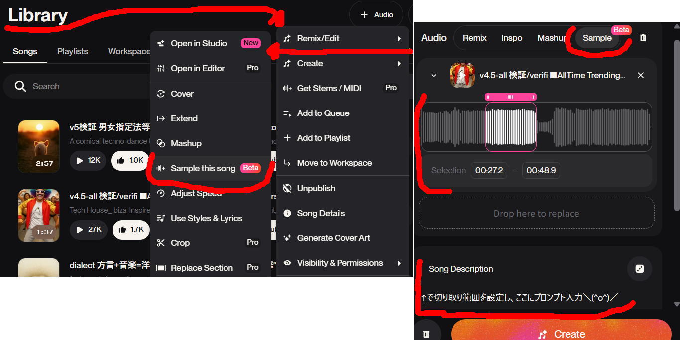 Whether it’s a snippet from a Suno song, a melody in your voice memos or something you heard and loved out in the world… chop it up and drop it into the Sample feature.